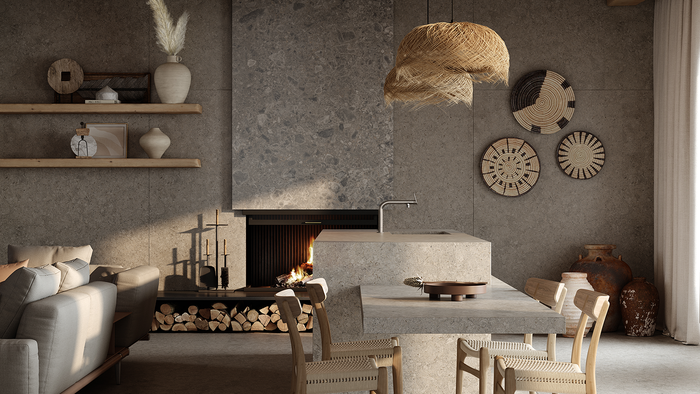(中国首发)维琴灰(Grigio)灵感来自 Grigio Alpi,是温暖的灰色与奶油色、木色和灰褐色完美融合形成的类似化石纹理。